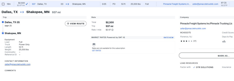 Access to platforms like DAT Freight & Analytics and Loadlink Technologies not only enables the threat actors to enhance the appearance of legitimacy, allowing them to maintain plausible profiles should potential victims attempt verification, but also provides opportunities to gather contact information for prospective targets and obtain additional contextual data, such as details on specific loads, dates and times, documents, or related materials, which can then be repurposed as spearphishing lures. In addition, although not verified in this specific case, the threat actors may also post fraudulent load listings containing malicious content, potentially resulting in malware infections.