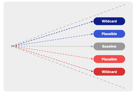 - Wildcard: A low-probability, high-impact scenario that challenges existing assumptions