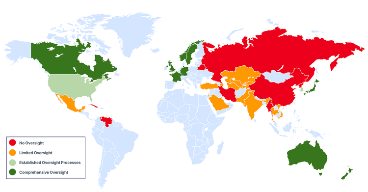 Many states use their cyber capabilities to monitor domestic security concerns, which can include law enforcement or national security priorities, monitoring political opposition, or conducting economic espionage on behalf of a key national industry. Domestic surveillance capabilities are often supplemented with commercial off-the-shelf spyware, such as Intellexa’s Predator or Candiru’s DevilsTongue. Similar to understanding political priorities for cross-border espionage, companies should assess whether they possess data that may be of political significance to the government of a country in which they operate. States that lack sufficient oversight or legal privacy protections pose an increased risk of intrusive cyber monitoring and surveillance.
