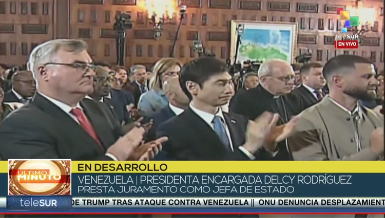 The first clarity on Venezuela’s future leadership came from Washington. At roughly 11:50 EST (12:50 VET), US president Donald Trump gave a public address in which he explicitly stated that Washington would work with RodrÃguez as it assumed a more direct role in overseeing the country’s energy and security policies. Trump also said that MarÃa Corina Machado, the most popular opposition figure in the country (who had been outside the country since December 2025 and is currently in Washington) did not “have the support within or the respect within the countryâ€� to rule. While Trump claimed that RodrÃguez had been "sworn in," RodrÃguez’s hold on power was not publicly ratified until 15:20 VET. At that time, state television aired footage of the Council of National Defense, a body made up of the main institutional leaders of the country, featuring RodrÃguez chairing the meeting and Cabello, López, and National Assembly President Jorge RodrÃguez (Delcy RodrÃguez’s brother) present. It was not until roughly 22:00 VET that state media began circulating a decision from the Constitutional Chamber of the Venezuelan Supreme Tribunal of Justice (TSJ) that made clear that RodrÃguez would assume the duties of the president. In its ruling, the TSJ invoked a Chávez-era precedent to overrule constitutional language that would otherwise require her to schedule an early election, effectively indicating that RodrÃguez is very likely seeking a mandate until Maduro’s term ends in January 2031. Neither RodrÃguez nor any other official has yet made this claim explicit, and US officials have suggested that new elections should be held before then. On January 5, she was officially sworn into office in a televised ceremony held in the National Assembly in the presence of key figures in the regime and diplomats from China, Iran, Russia, and Cuba.