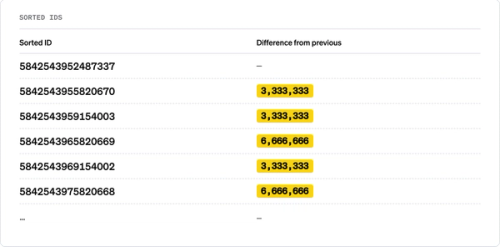 To test this, we sorted the IDs and computed the differences between consecutive values: