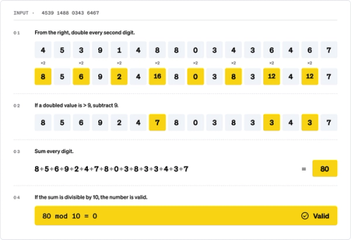If you’ve spent any amount of time in the data security space, you’ve probably heard of the “Luhn Check”. The Luhn algorithm is a checksum formula embedded in credit card numbers that helps merchant vendors (think Point-of-Sale terminals) quickly validate whether a number is a plausible credit card. The last digit of a credit card is the check digit, and we can verify a credit card number by calculating the Luhn checksum over all digits, then comparing the result to the check digit.