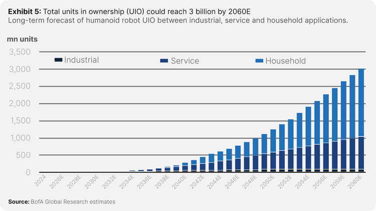 A growing number of companies are developing humanoid robots for roles in manufacturing, customer service, and even athletic competition. Investors are positioning for long-term growth, with research suggesting that by 2060, more than three billion humanoid robots could be integrated into human society.