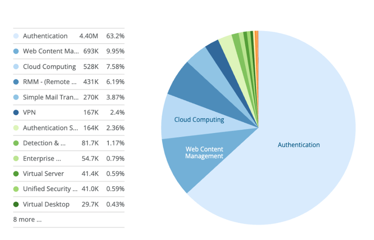 This is not a random distribution. Authentication systems, cloud platforms, and remote access tools — VPNs at 2.4% and RMM tools at 6.19% — are precisely the systems that give attackers the broadest foothold inside an organization. A single stolen credential for an authentication portal or VPN can serve as the entry point for lateral movement, privilege escalation, and ultimately a full breach.
